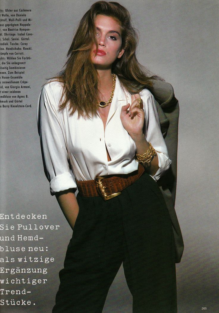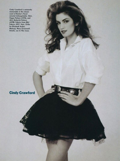 Cindy rocks this tutu and classic white shirt combo to create a whole new style for a British runway show in ‘91.